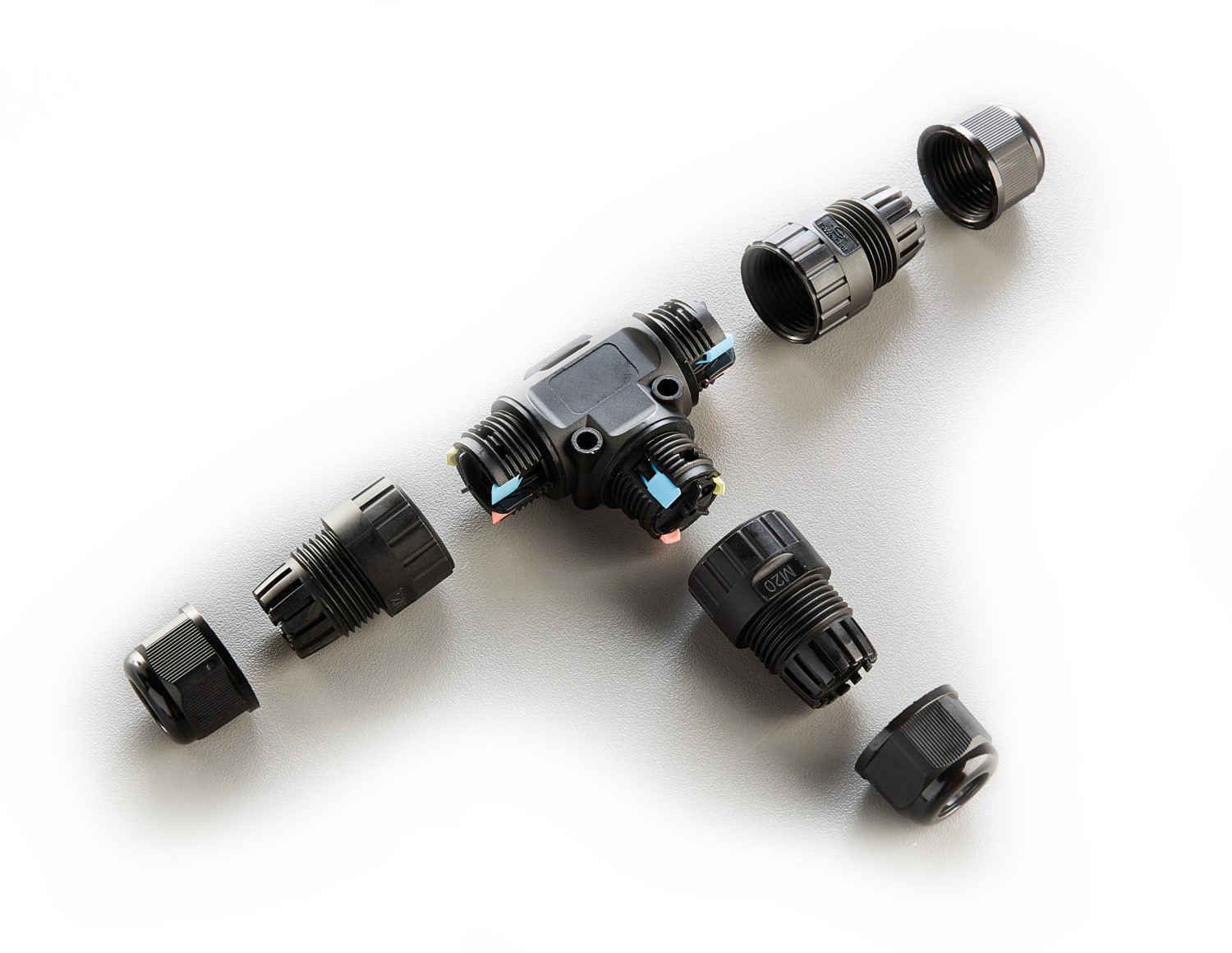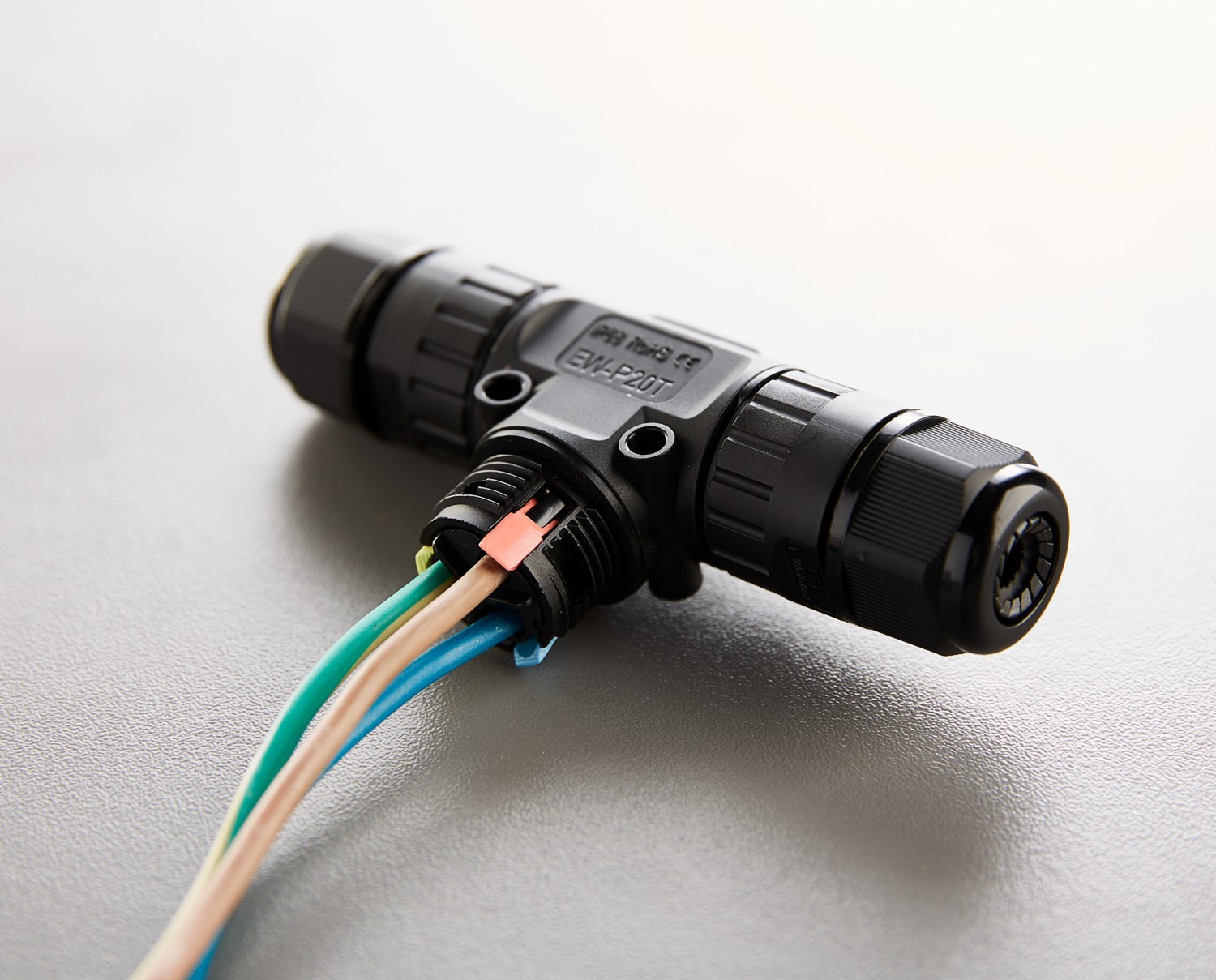 HEITRONIC -T-Kabelverbinder mit Steckklemmen 3-polig mit 9-12mm Kabeldurchmesser IP68