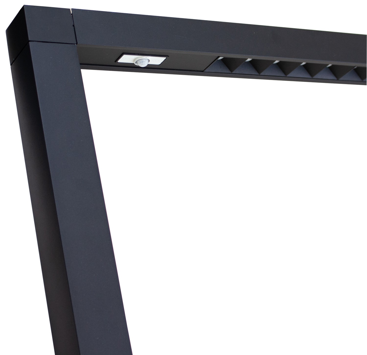 Elegante Stehleuchte mit Präsenzmelder und Tageslichtsensor in Schwarz, stufenlos dimmbar, einstellberae Lichtfarbe