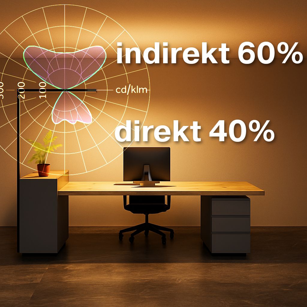 - Indirektanteil doppelasymmetrisch für optimale Deckenaufhellung
