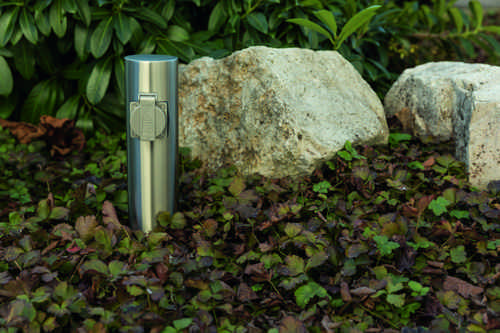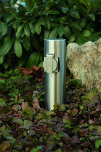 Runde Energiesaeule mit 2 Steckdosen fuer den Aussen- und Inneneinsatz