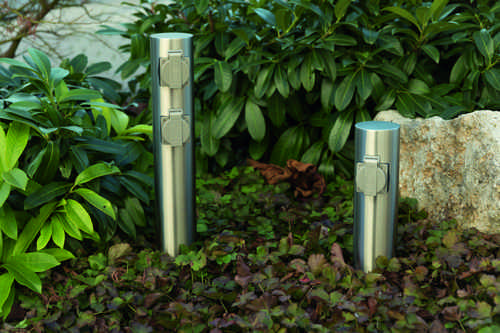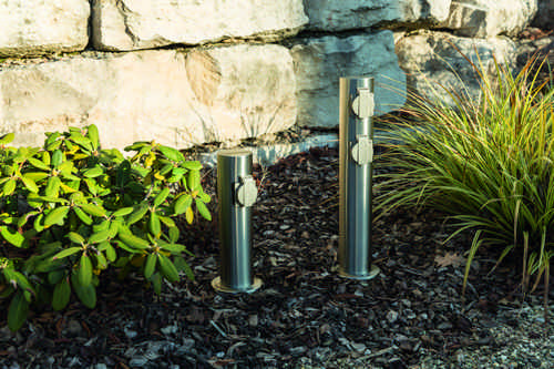 Runde Energiesaeule mit 4 Steckdosen fuer den Aussen- und Inneneinsatz