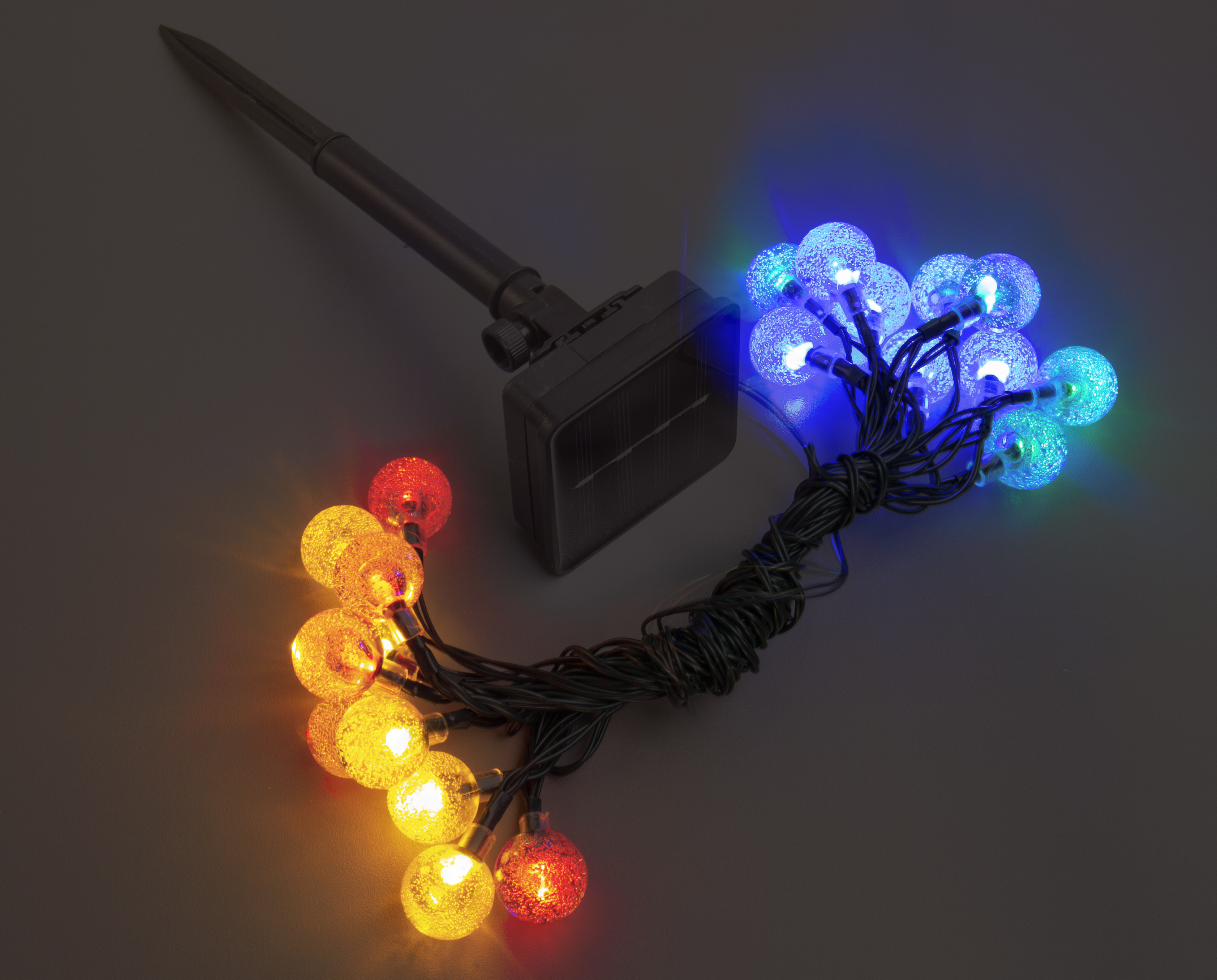 LED SOLAR-Lichterkette 20 Kugeln bunt Dauerlicht und Blinkfunktion Auto-AN