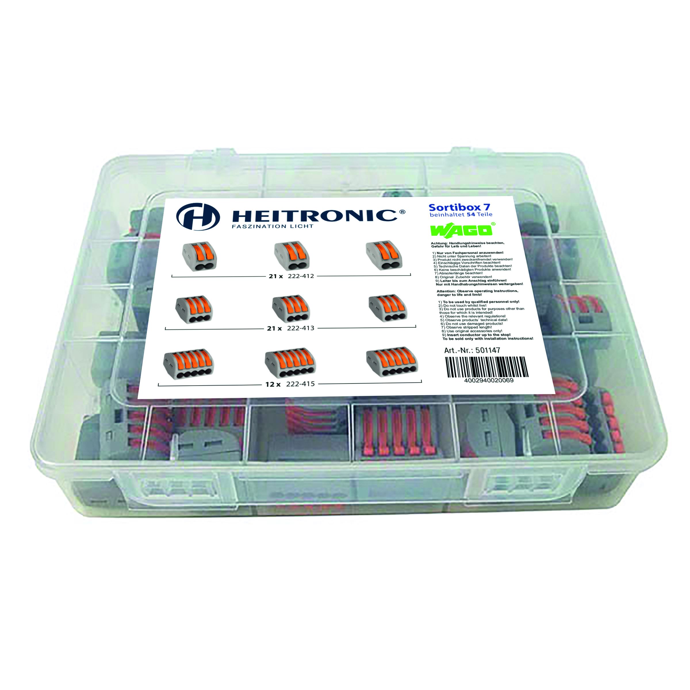 Produktinformationen "Wago Sortimentsbox 7 mit 54 Wagoklemmen transparent/orange"