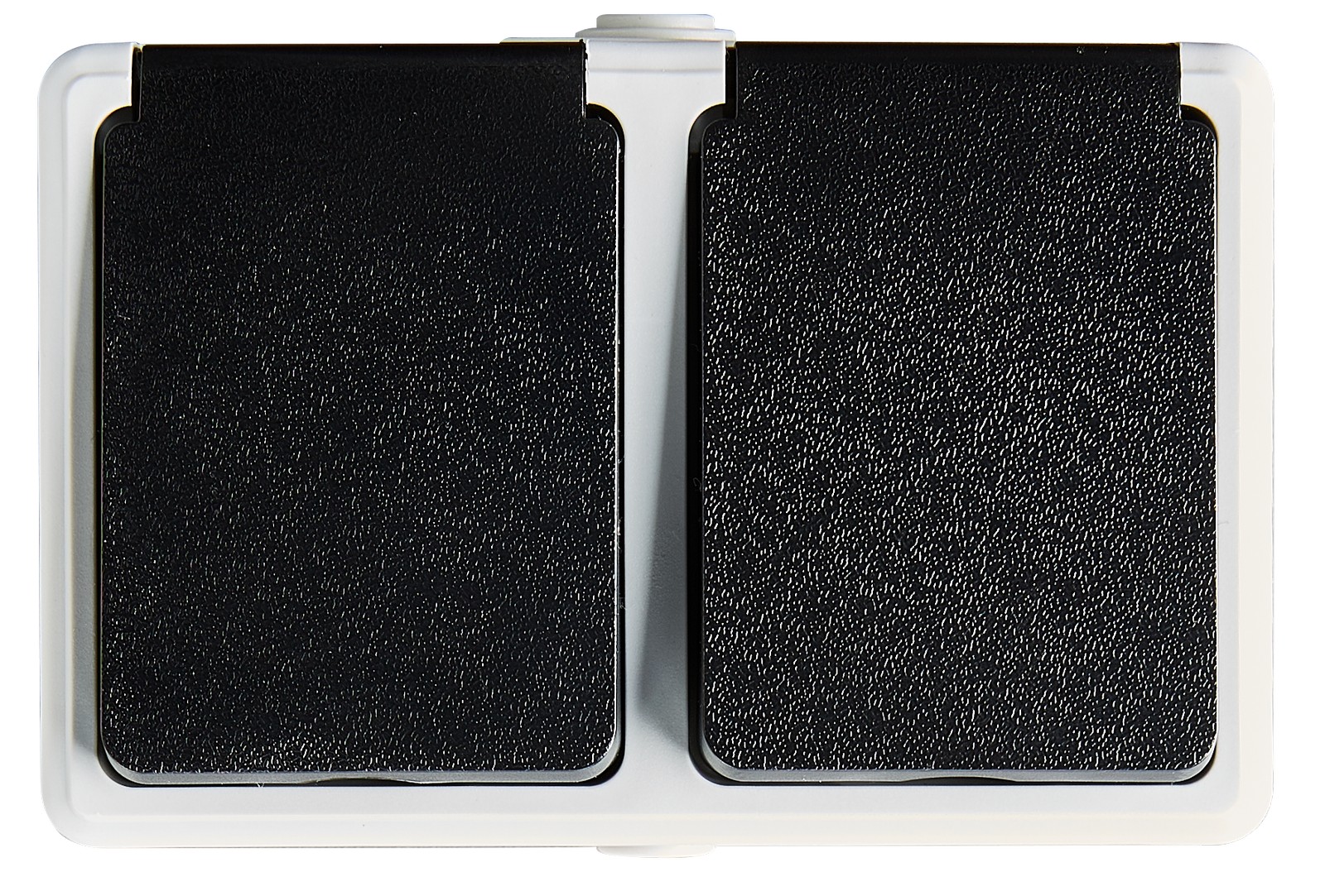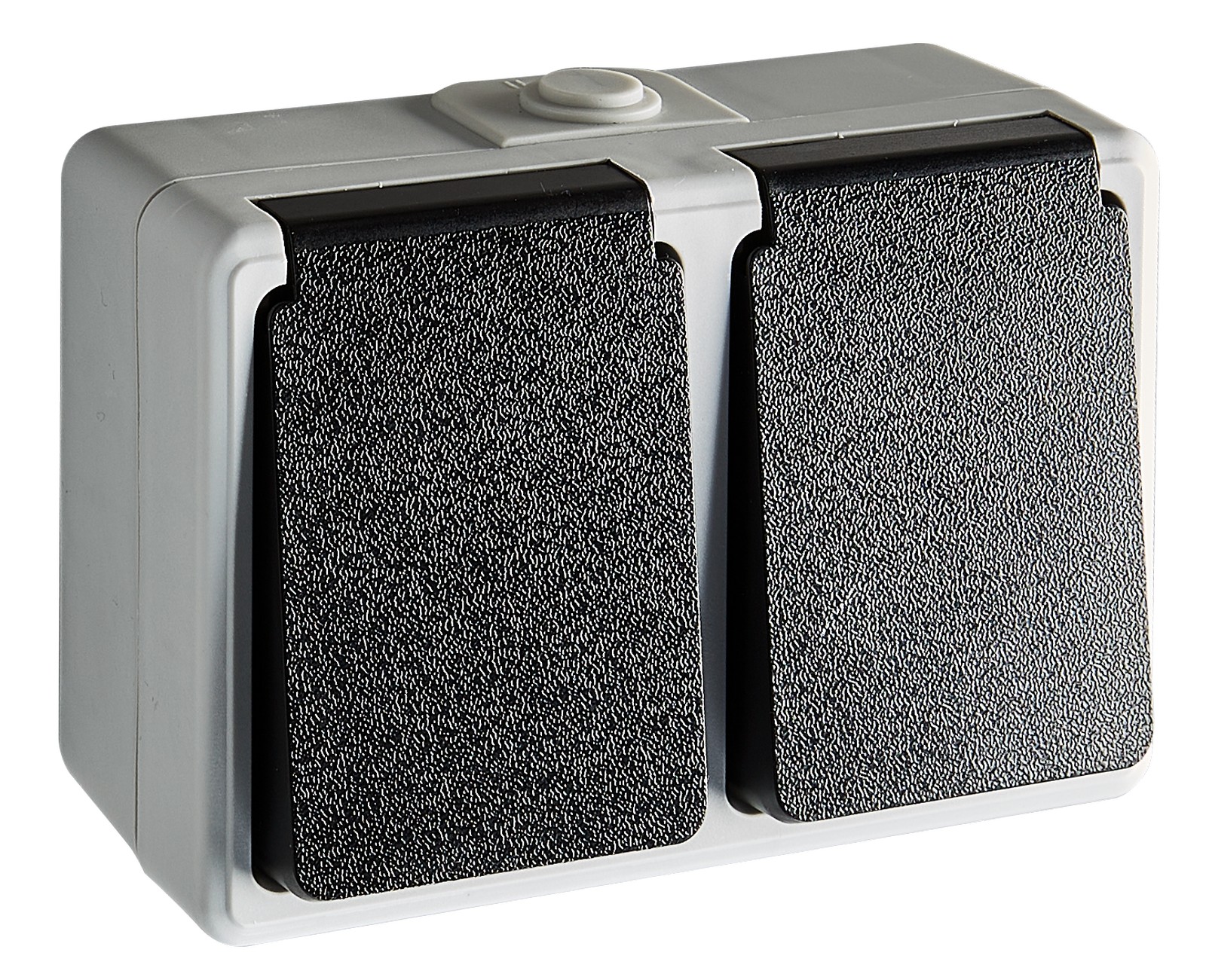 Heitronic Aufputz-Feuchtraum Schalterserie MONSUN Schutzkontakt Steckdose mit Deckel 2-fach waagrecht Lichtgrau/Anthrazit IP44