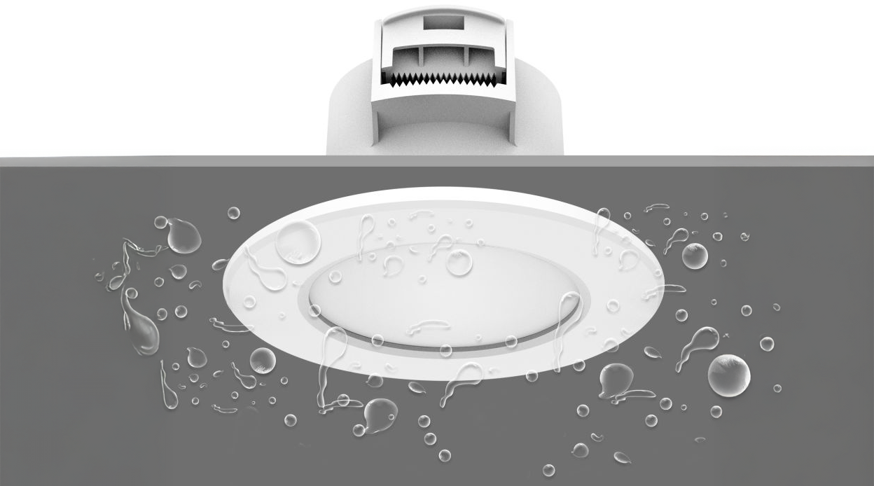 - Höhere raumseitige Schutzart (IP44) für den Einsatz in Feuchträumen, sowie im Innen- und Außenbereich